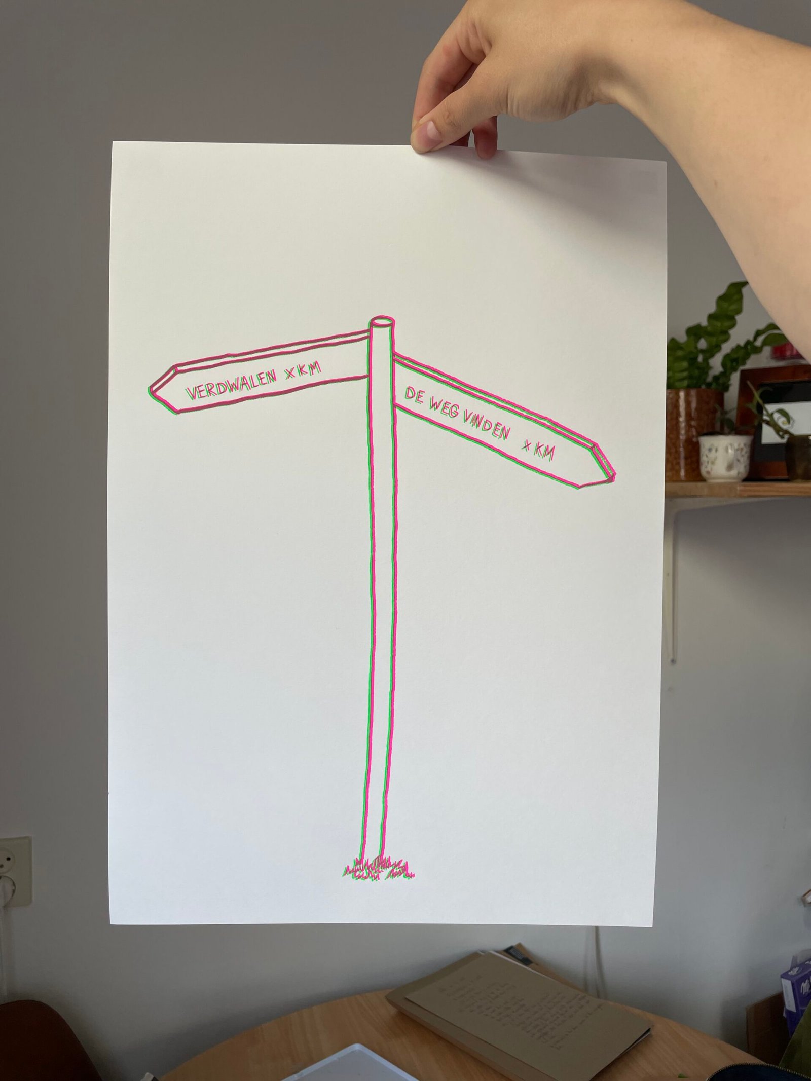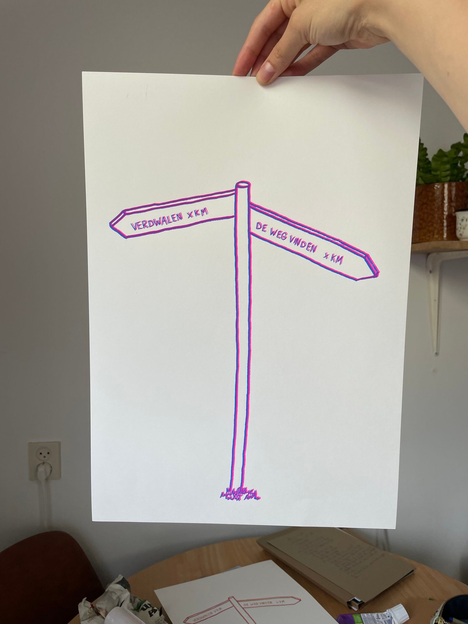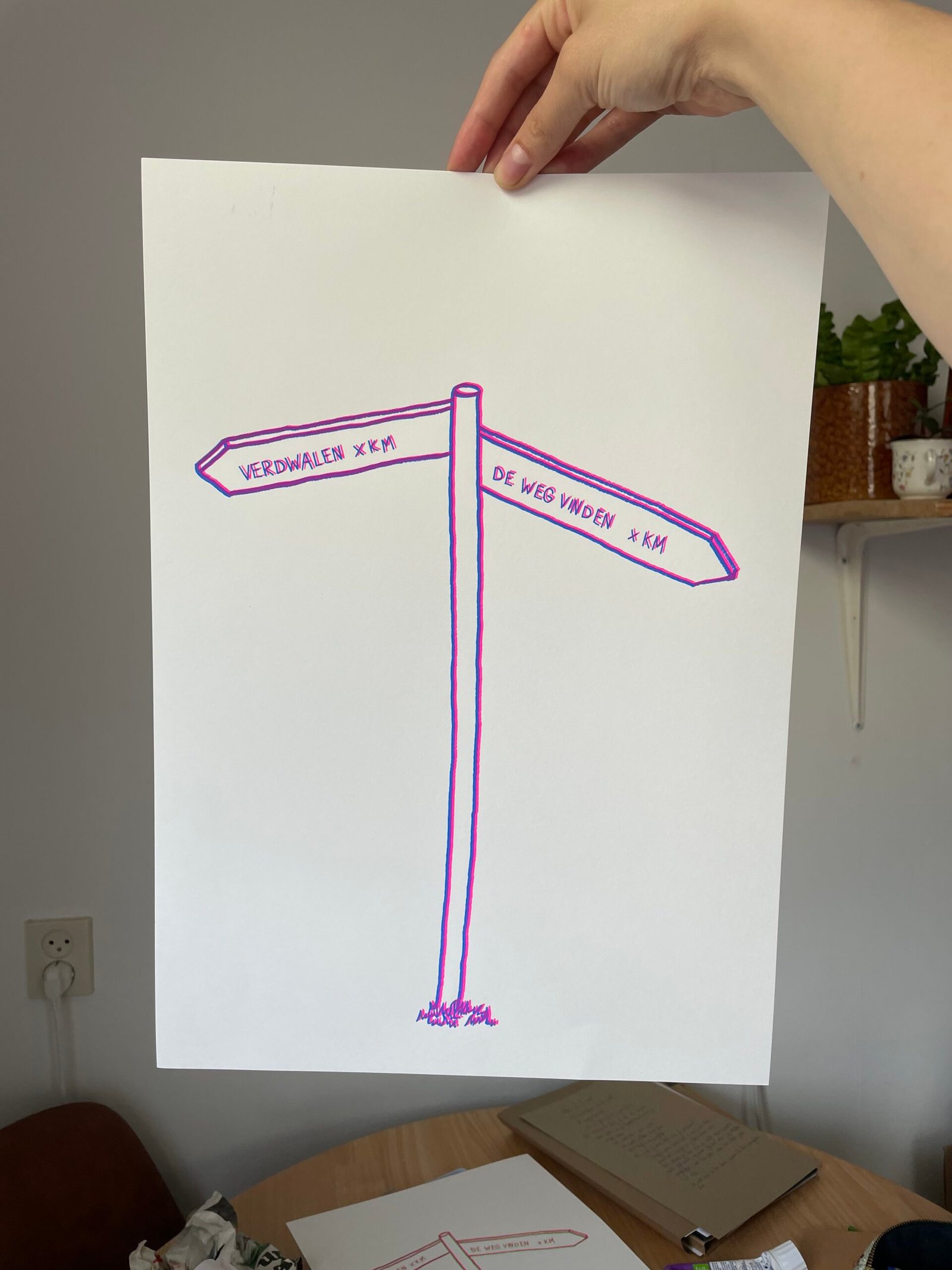 Er zijn drie varianten om uit te kiezen : roze, roze met groen of roze met blauw. Het is geprint op bio papier en heeft daardoor een creme kleur. De prints zijn A3 en dus lekker groot!